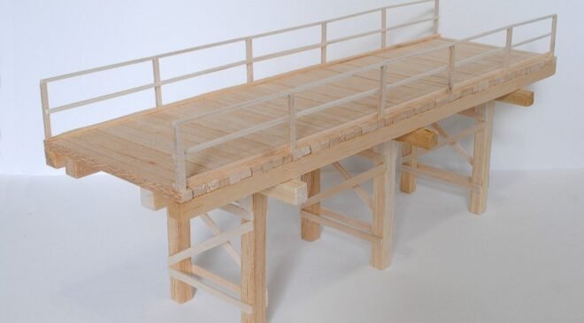 E as pontes eram construídas de acordo com a necessidade, situação e material disponível. Botes de borracha, pedaços de trilho e principalmente madeira. E pensando nisso resolvi desenvolver essas duas pontes, em madeira balsa, uma pesada, para a passagem de veículos mais pesados, como tanques, e a outra mais específica para tropas e veículos leves. Ambas foram projetadas e construídas por engenheiros alemães em campo e utilizadas na frente leste. Elas podem servir de base para kits ou compor dioramas, valorizando os trabalhos dos modelistas.